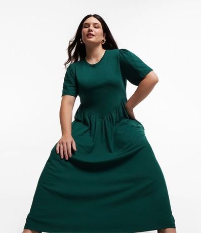 Vestido Midi en Media Malla con Manga Abullonada Curve & Plus Size | Renner
