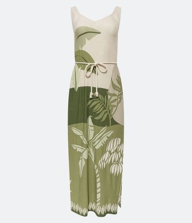 Vestido Midi en Viscosa con Lazo por Cordón y Estampa de Follaje 1