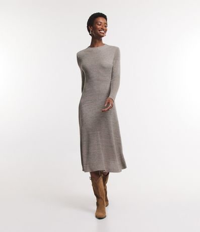 Vestido Midi Evasé en Punto con Manga Larga 1